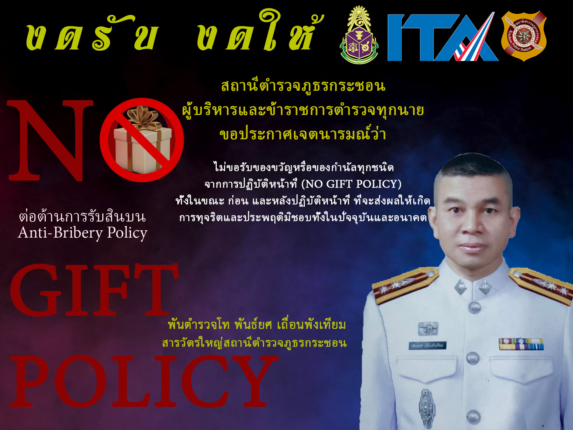 - ประกาศสำนักงานยุทธศาสตร์ตำรวจเรื่องเจตนารมณ์ที่จะไม่รับของขวัญหรือของกำนัลทุกชนิดจากการปฏิบัติหน้าที่