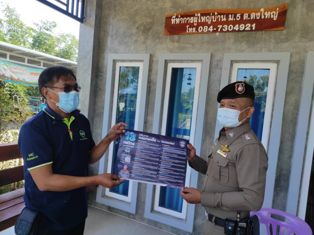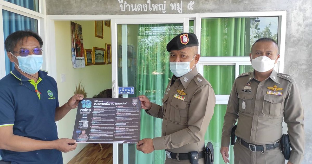 พันตำรวจโท สุนันท์ เจริญจิตร สารวัตรใหญ่สถานีตำรวจภูธรกระชอน พร้อมชุดปฏิบัติการชุมชนยั่งยืนออกตรวจเยี่ยมประชาชน และประชาสัมพันธ์การป้องกันตนเองจากการถูกหลอกทางออนไลน์